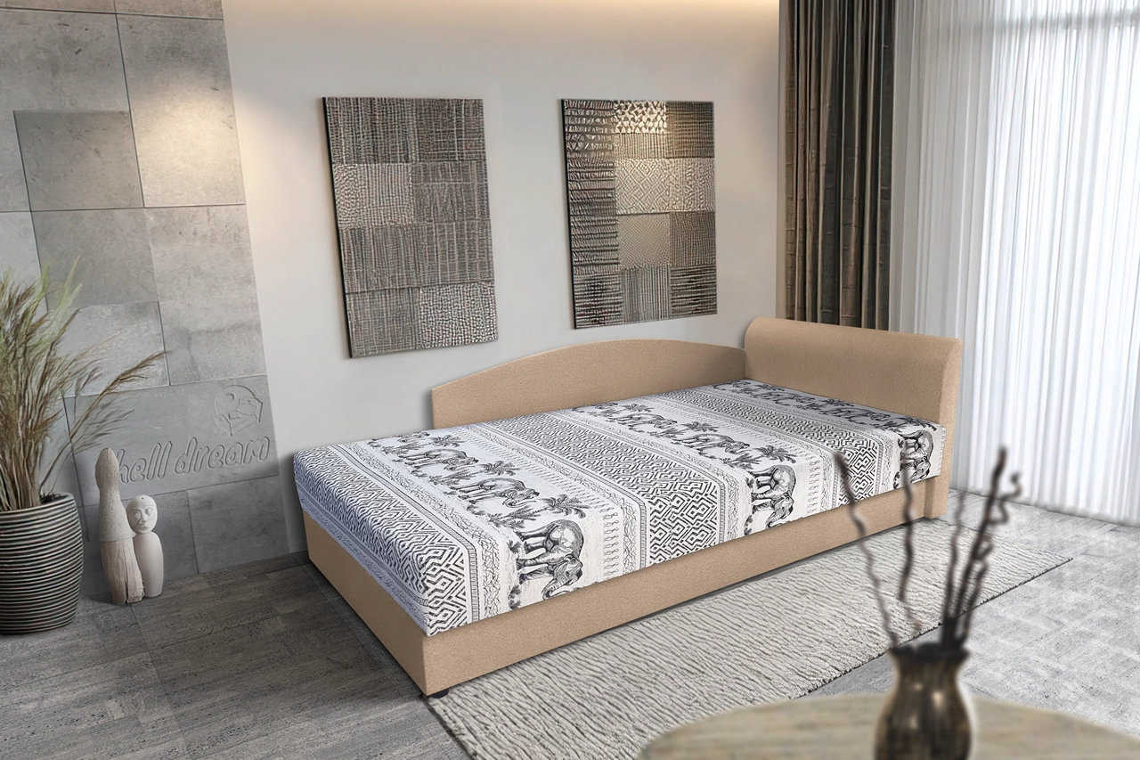 Ez a saroktámlás heverő ágyneműtartóval ideális megoldás mindazok számára, akik kis helyen szeretnének kényelmes, megbízható fekvőhelyet kialakítani. A karakteres, retro Elefánt mintás szövet egyedi megjelenést kölcsönöz, miközben a klasszikus forma könnyedén illeszkedik otthoni és szálláshelyi környezetbe is.