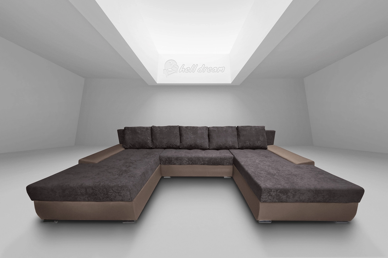 Wixy Giga u alakú kanapé pasztell taupe és taupe szürke színben 405 x 225 cm fantasztikus nagy fekvőfelülettel
