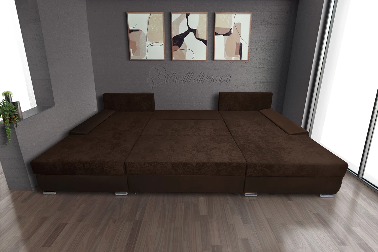 Wixy Giga u alakú kanapé sötét mahagóni és kóla színben 405 x 225 cm fantasztikus nagy fekvőfelülettel